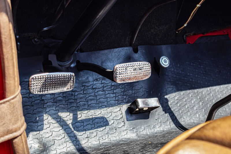The original steel rims are in perfect condition, They are equipped with white sidewall Lester Tyres 5.25 and 5.5/1b. At the rear the spare wheel is equipped with a Firestone tyre.