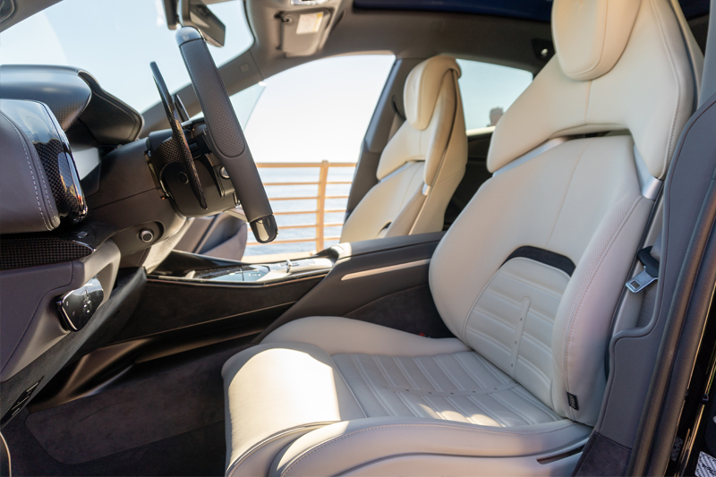 • Luxurious white leather interior with contrasting details